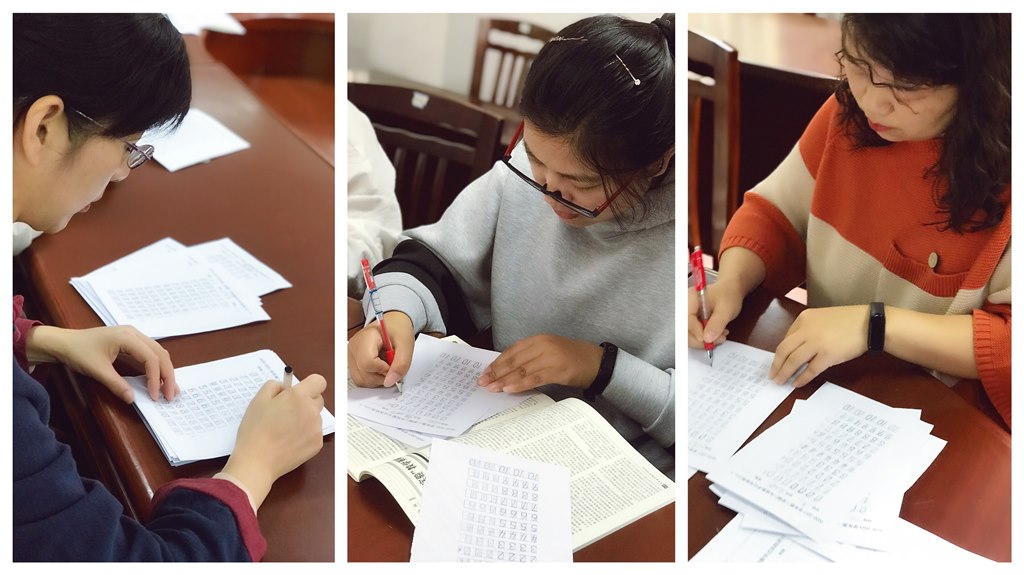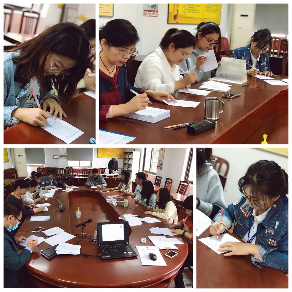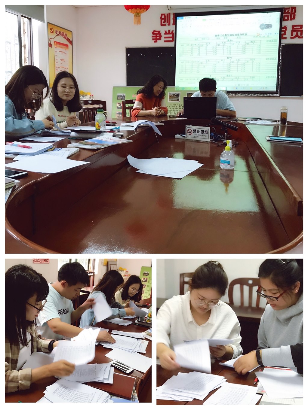 教研组长带领教研组全体成员学习了数字规范书写教学视频,各年级老师认真观看受益匪浅。看完后,丁组长组织所有数学老师也进行了数字书写,欲与学生一较高下。之后,由各年级老师对学生作品进行流水批阅,大家有序合作、默契十足,最后进行了数据汇总。