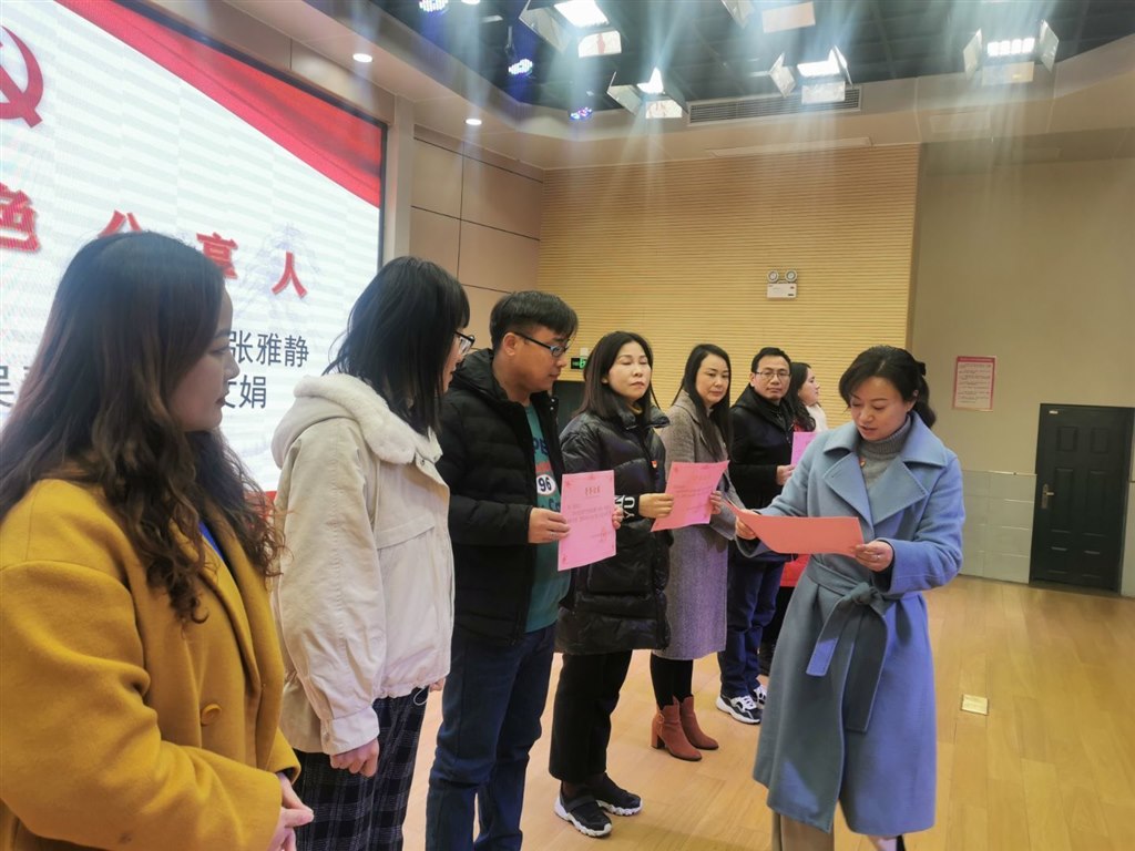 总结报告后,蒋忱书记为丽三红色分享人颁发了证书,张银凤同志对党员年度评议情况进行了通报。