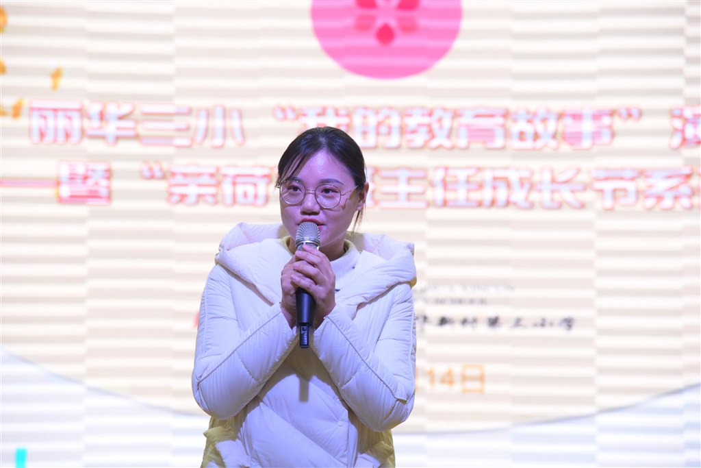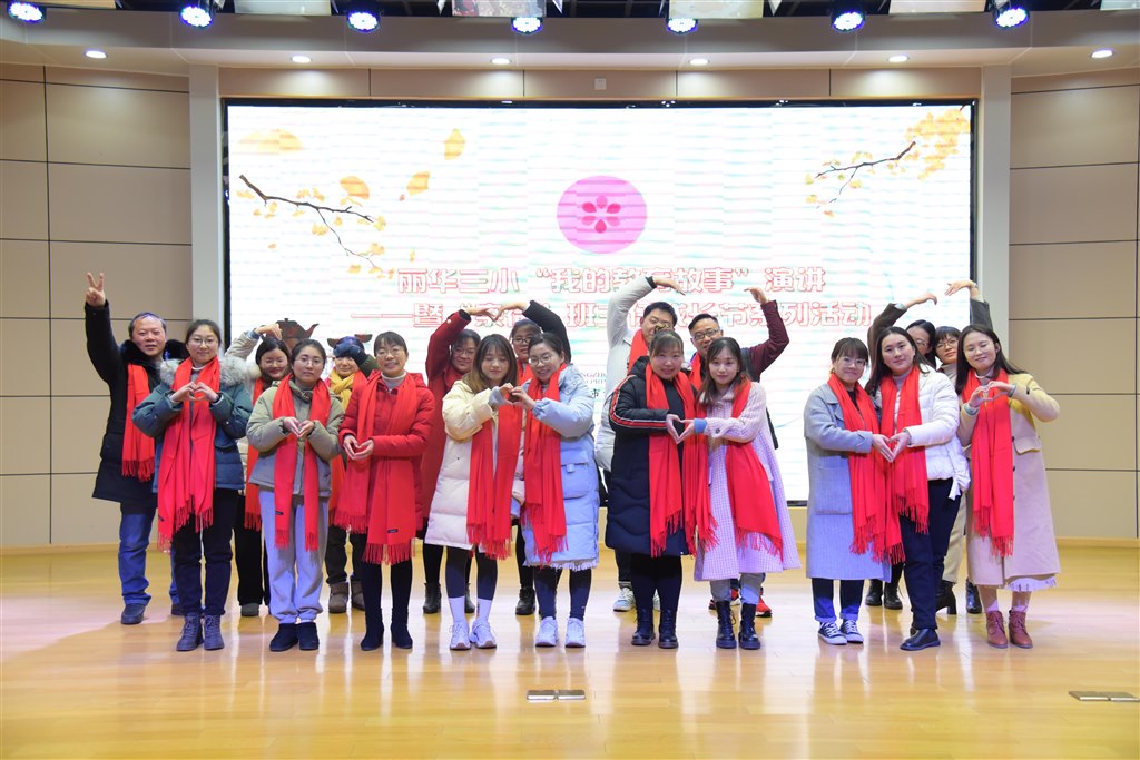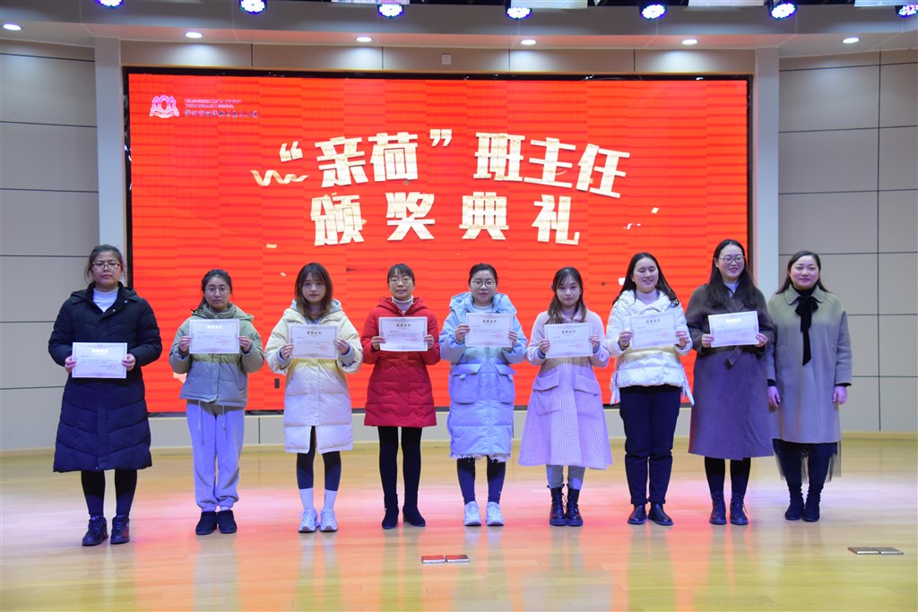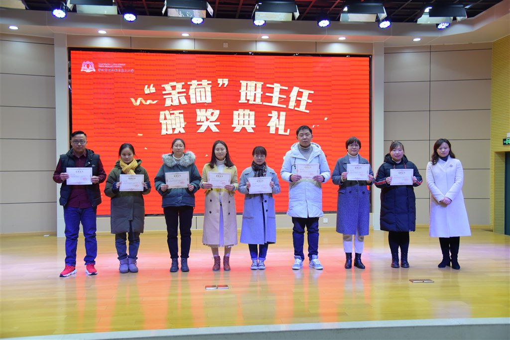 经过评委老师对文稿和现场演讲的综合评分,何三发、叶华、张丹、王涛、王远东、褚勇奇、谢玲、蒋莉八位老师荣获“清荷智慧奖”;吴聪利、徐爽、李倩倩、潘丹华、吕倩、丁家恬、张雅静、崔颖八位老师荣获“清荷育人奖”。朱玉茹老师发布了“亲荷”班主任圈的logo,并提炼出了丽三班主任的特质,“亲荷”班主任的特质也等待所有的班主任一同去描绘和书写。最后,所有班主任上台留下亲荷老班圈的活动合影,领导们为老班们戴上温暖的红围巾,串起同心,围出真情。