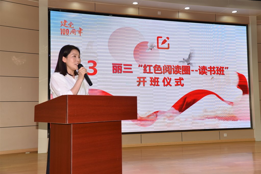 活动的第三项议程是丽三“红色阅读圈---一读书班”开班仪式。成立“丽三红色阅读圈—读书班”,是为了组织开展好“跟着习近平总书记读党史”、“带着红领巾学党史”的“一跟一带”系列红色阅读活动。通过学人、读史、阅景、观影等多种途径来阅读我党的百年风采,全方位学党史,激励担当作为。宣传委员张银凤详细介绍了读书班要求。