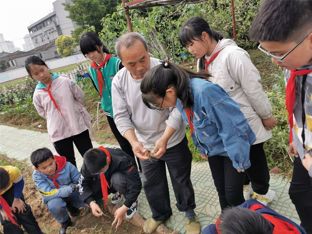 看!那田间地头蓬勃着的无限生机,是五2、五3班的孩子们啊!他们像一群又一群的小鸟飞落在雨荷农场,飞落在农场郭爷爷的身边。他们观察着关于大自然一个又一个的秘密,他们有着一个又一个的问题,他们他们活力四射、迸发生机,他们仔细观察、实地采访,他们劳动,他们收获;他们与自然相拥,与自然共生长!