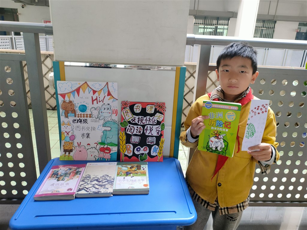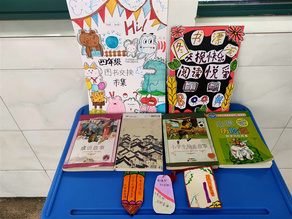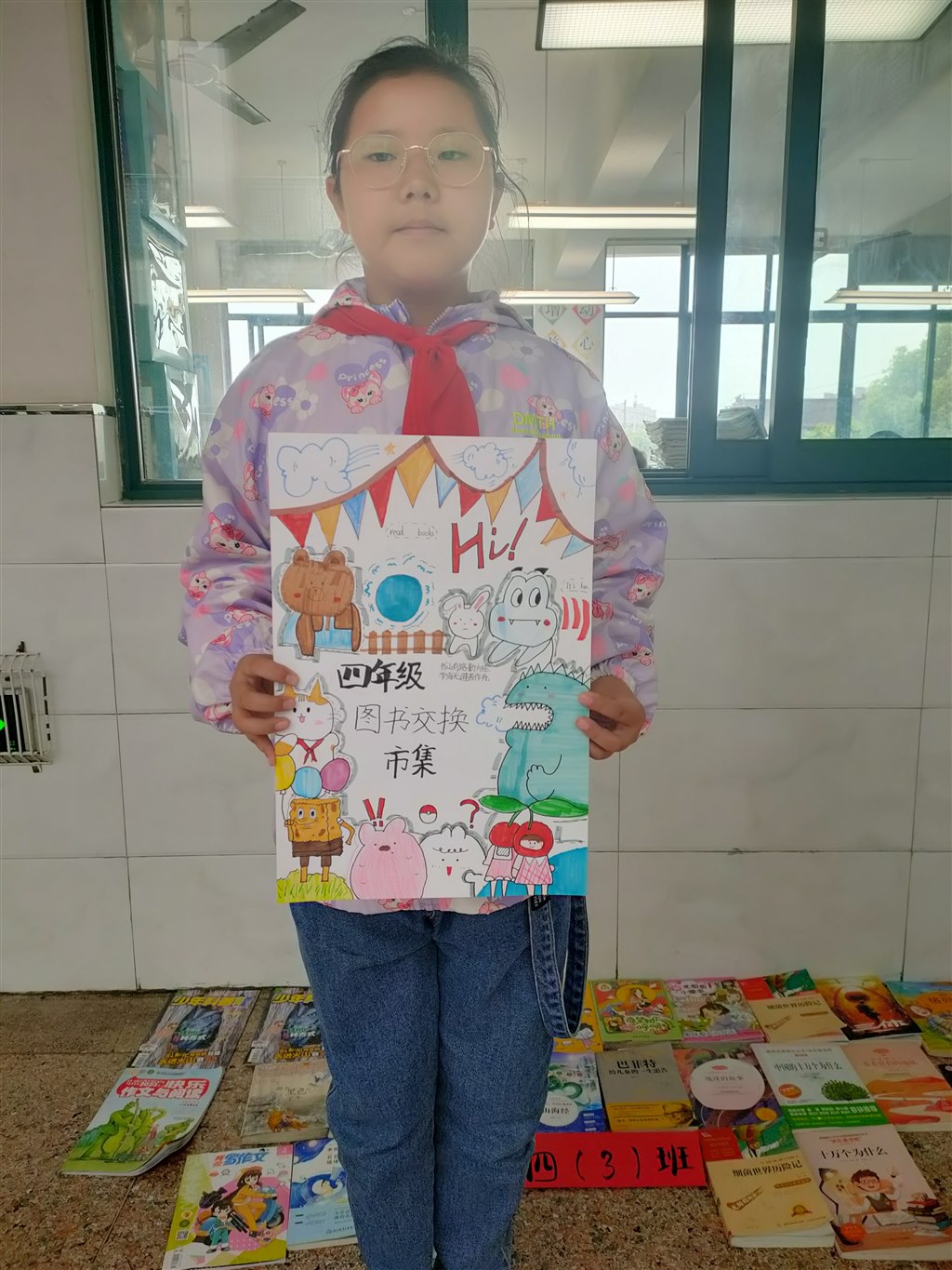 四年级的同学们提前在家里精心挑选了想要交换的图书,还配上了精美的书签,利用上午第一节课课间,他们早早的把摊位摆好,一幅幅生动的宣传海报表达了他们对这次活动的期待!各具特色的书摊上,摆放着经典名著,有神话寓言,有作文大全,有自然百科,有科幻书、故事书,工具书等等各种书籍,琳琅满目!
