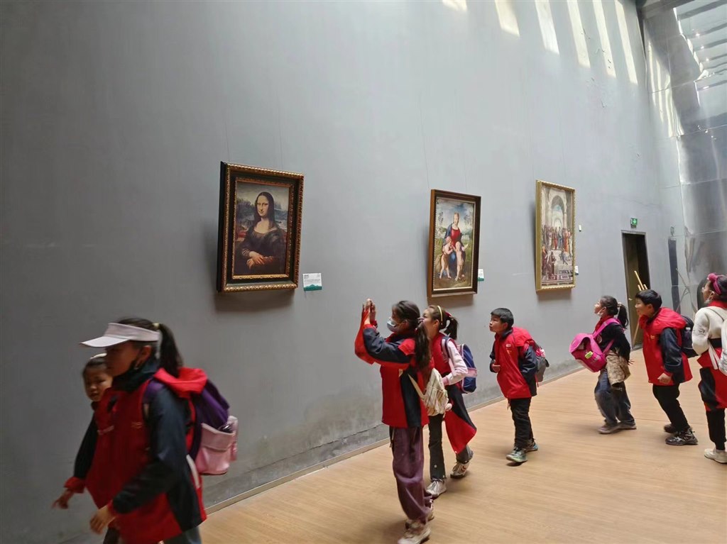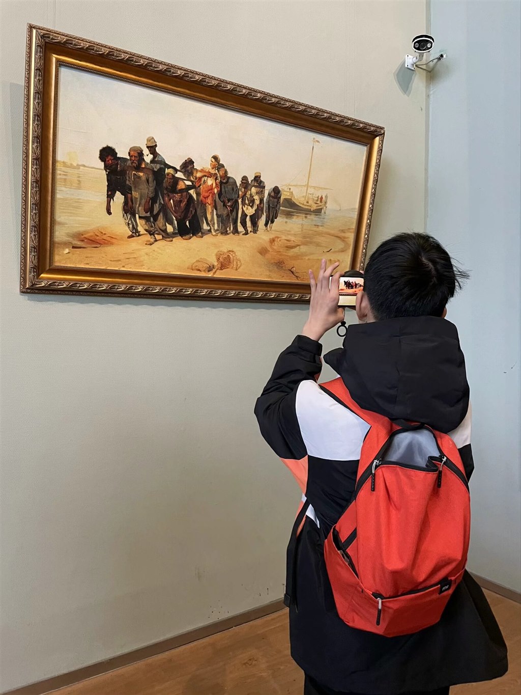 在导游的带领下,同学们来到艺术博物馆。在这个集油画、国画、雕塑等展品的综合性展馆中,精美的艺术品遍布艺术馆各个角落。同学们看得目不转睛,无不被这些巧夺天工的艺术品所吸引,既增长了美学知识,又得到了艺术的熏陶。