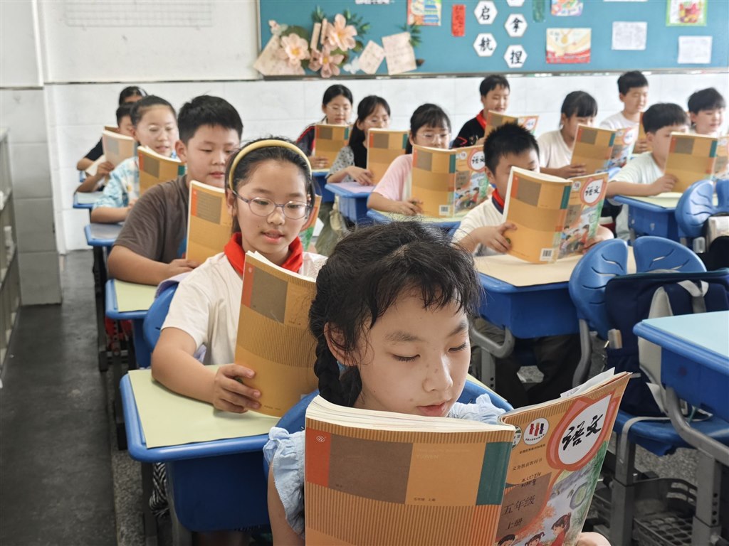 全校学子以班级为阵,同声诵读教材之精选篇章,借声音之桥梁,传递文字之魅力,燃朗读之热情,照亮心灵之殿堂。各班学子举止从容,神态端庄,精神饱满,全心投入朗读之中。他们的语言表达生动、有力,准确地传达文字的情意,娓娓动听,令人陶醉。